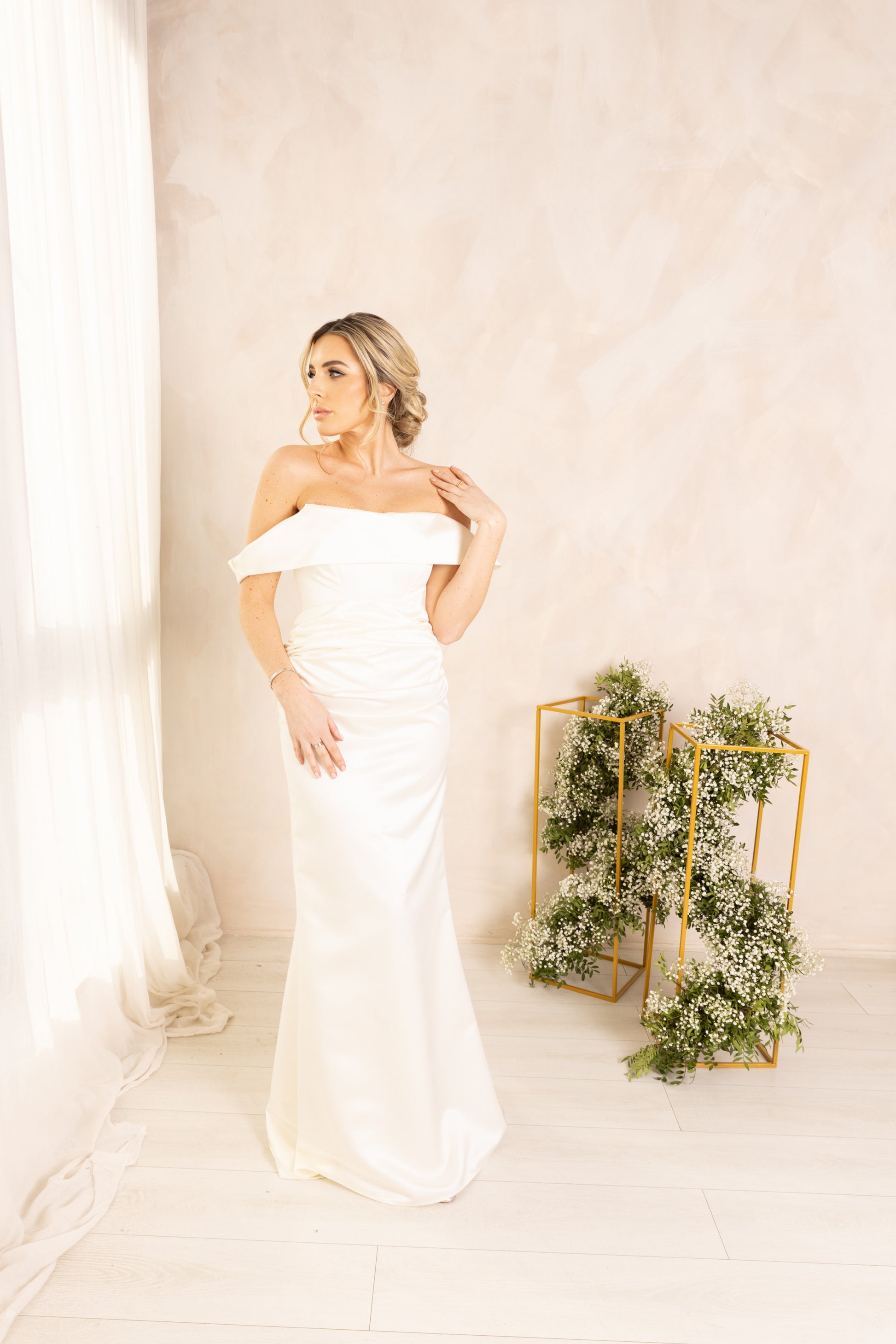 Inspired with romance in mind. The Castillo is a stunning satin based corset gown. It’s crafted using the most luxurious bridal satin, in a selection of unique modern colour ways. The strapless and bardot neckline is complete with an additional twist for maximum elegance.
