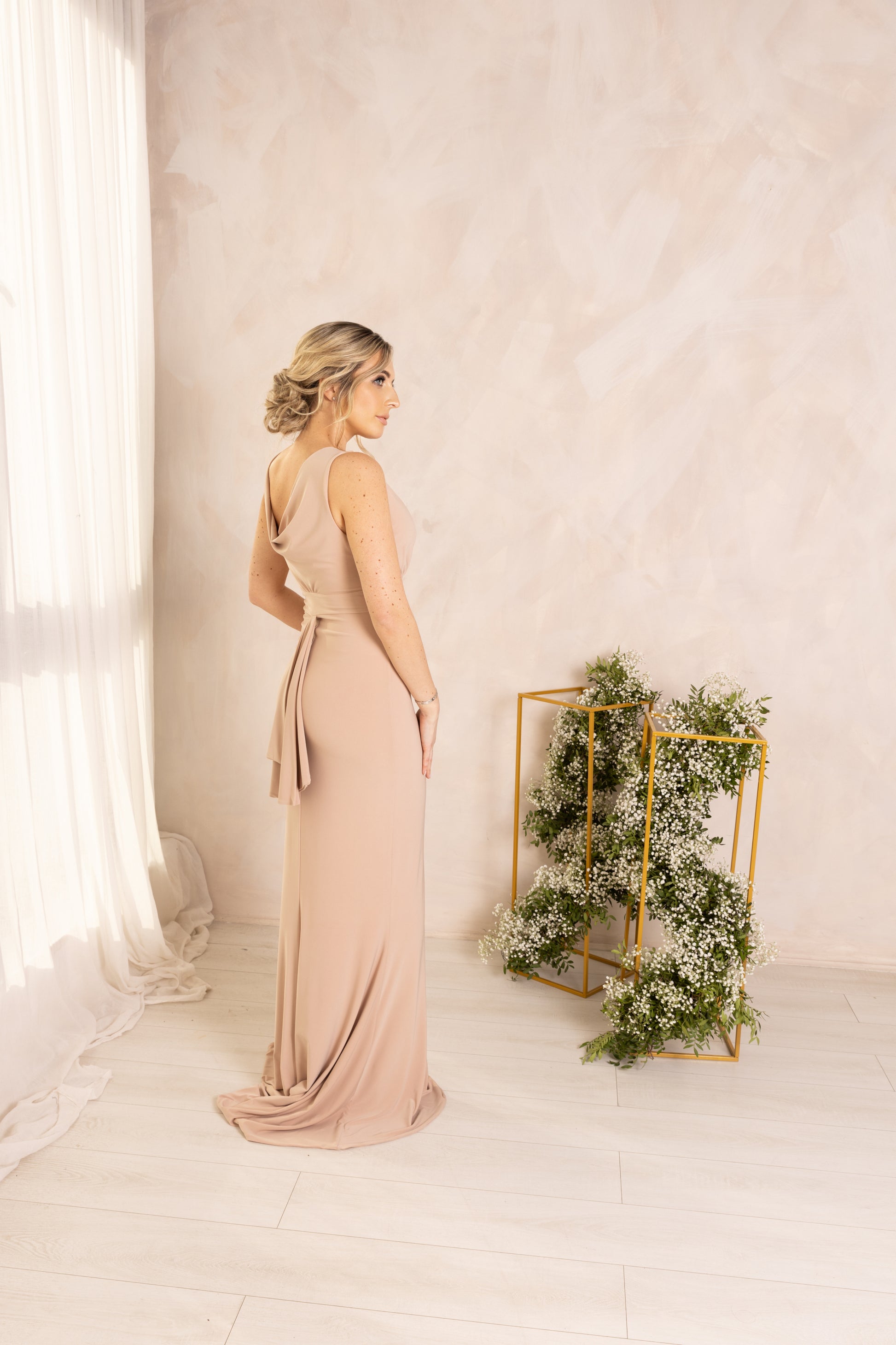 A Grecian classic, designed for the modern Bridesmaid or Black-tie guest, the Daisy gown is crafted from a luxurious heavy duty bridal fabric, that skims your curves and features a stunning fishtail skirt that creates the illusion of a structured hourglass shape. It’s finished with a gathered neckline and gorgeous cowl back.